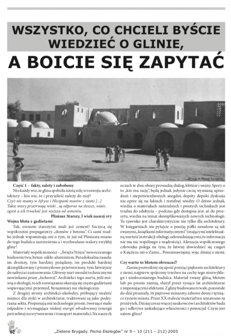 Tak, owszem starożytni znali już cement! Szczycą się współcześni propagatorzy „domów z betonu”. Ci sami rzad- ko jednak wspominają oni o tym, że już od Pliniusza miano do tego budulca zastrzeżenia a i wychwalano walory zwykłej gliny!